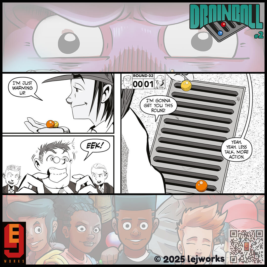 “So you think you have what it takes to be a DRAINBALLER, do ya?!Ok then... let's see what you’ve got!I warn you, though. Drainball is NEXT LEVEL competitive. No one will be held accountable for any EMOTIONAL DAMAGE caused if you lose!”This comic is based on state school teenagers of different cultural backgrounds, some with special educational needs, brought together as friends through a marble-based competitive game called Drainball. After witnessing a thrilling game being played for the first time, the protagonist is shown the ropes, eventually joining the Drainball club and moving up the ranks.Their biggest rival, The Academy, are known to dominate the State school both academically and athletically. However, Drainball is the only rare matchup where the State school have the upper hand…or do they? Through a humorous series of adventures and storylines, the outcome is truly compelling.Drainball also features a comic-within-a-comic mini-series, as well as a unique blend of greyscale and colour artwork with a smooth transition from one comic to another.Drainball Comic £5.50